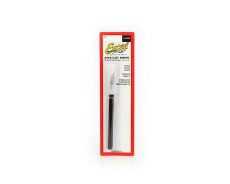 Excel Rite Cut Hobby Knife. Package includes hobby knife with black hex handle and factory installed blade and safety cap.