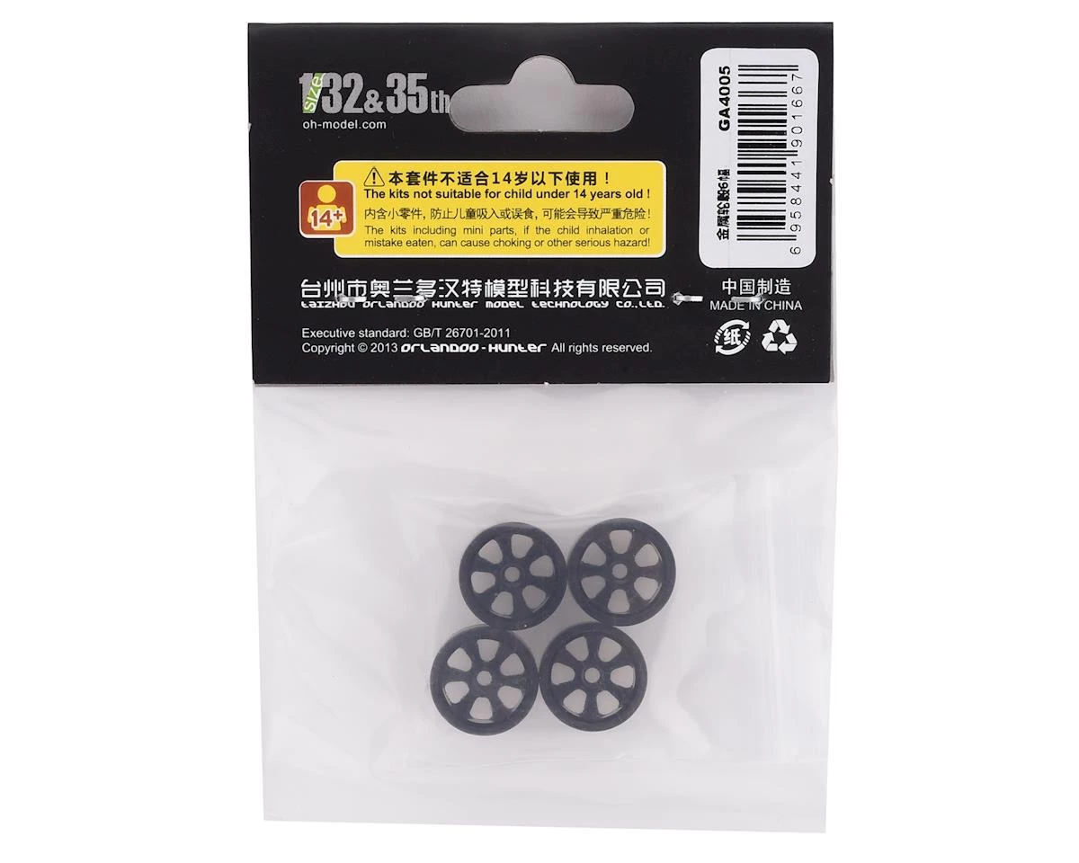 The Orlandoo Hunter Aluminum 6 Spoke Wheel Set is a must have upgrade for your 35A01, 32A02 or 35P01 model. These wheels are machined aluminum and are approximately 1 gram heavier than the stock wheels, providing a little more weight down low for improved traction and stability. Package includes four wheels.