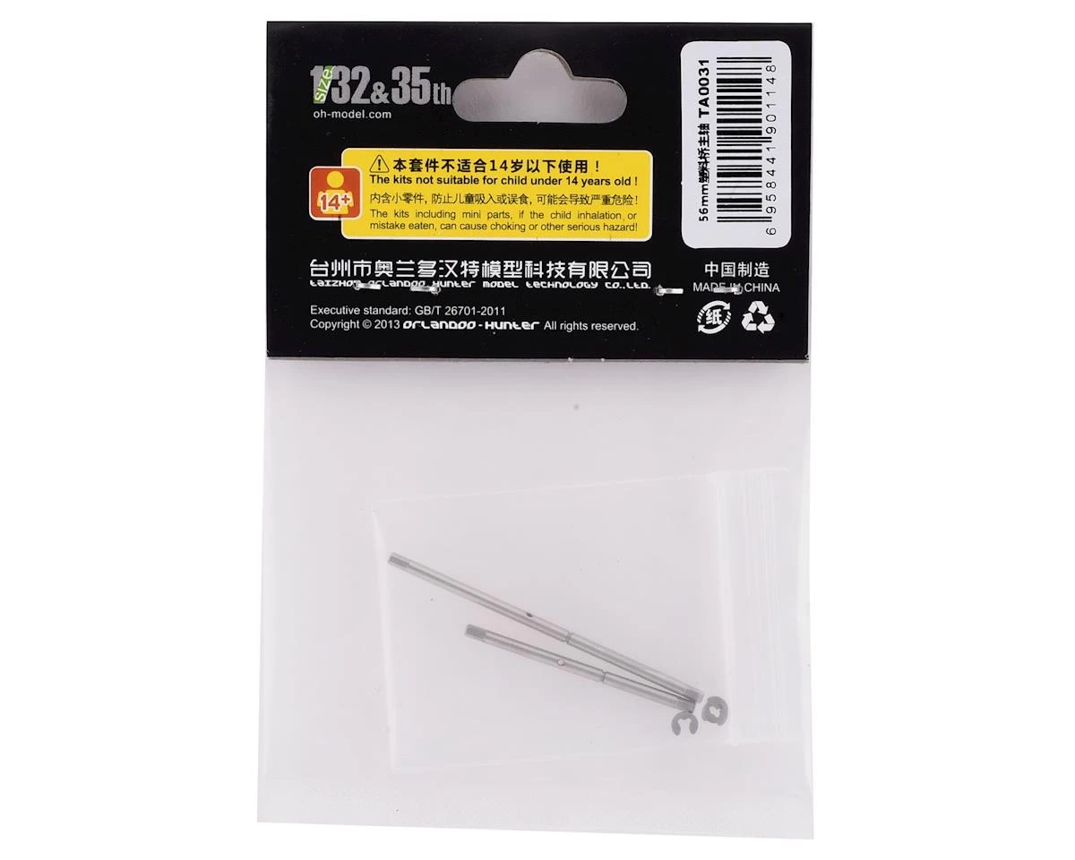 Orlandoo Hunter OH32A02 56mm Axle Shafts. Package includes two replacement axle shafts and e-clips.