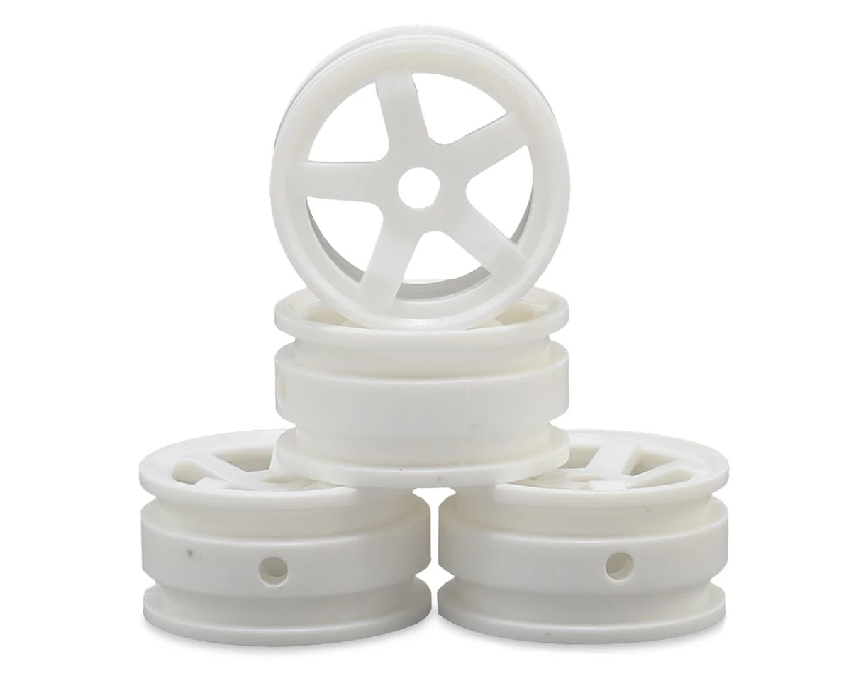 Orlandoo Hunter Type 1 Wheel Set. These wheels feature a five spoke design and are compatible with the Orlandoo 35P01 F150, 35A01 Jeep and 32A02 Pajero kits. Package includes 4 wheels.
