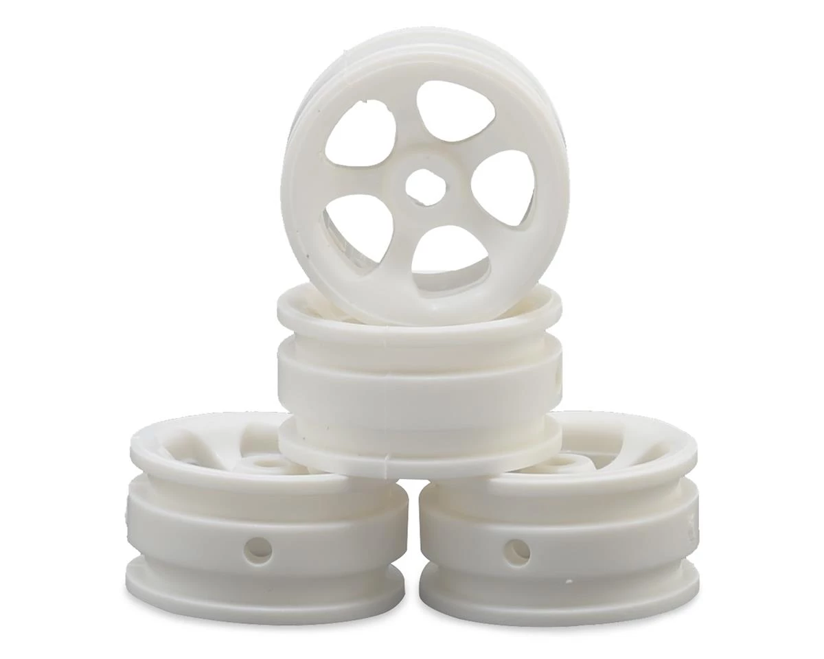 Orlandoo Hunter Type 4 Wheel Set. These wheels feature a five spoke design and are compatible with the Orlandoo 35P01 F150, 35A01 Jeep and 32A02 Pajero kits. Package includes 4 wheels.